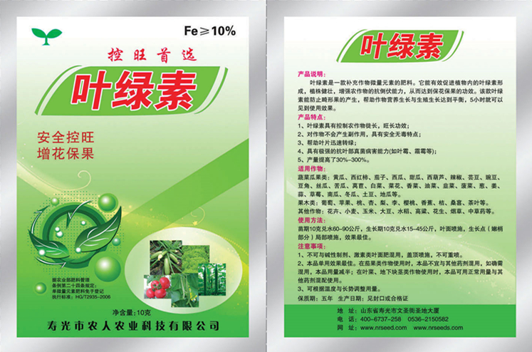 1.叶绿素具有控制农作物徒长,旺长功效;