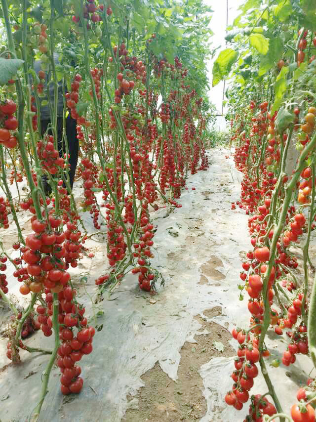特征特性:国外引进,一代杂交,红果,属无限生长型,植株长势旺盛,叶片中等,根系发达。果实短椭圆型,深红色,果萼厚、大而美观,果皮硬度好,耐储运。高温抗裂果,大小均匀,单果重20克左右,糖度≥10度以上,口感好,抗黄化曲叶病毒,抗叶霉病,灰霉病等番茄病害,适合保护地和露地栽培。